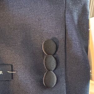 Stylish navy tuxedo jacket by Tommy Hilfiger. Features elegant black lapel. Perfect for formal events.