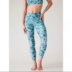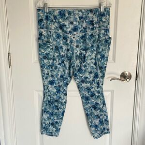 Athleta Salutation Stash pocket leggings tights opaline floral blue 47285
