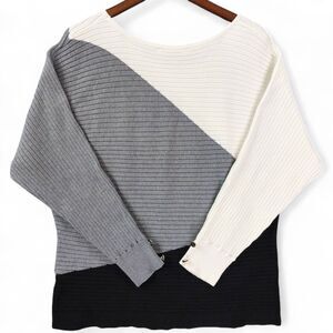 Madison + Hudson Sweater Womens XL Black Gray White Colorblock Ribbed Dolman