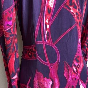 (N3) Donna Morgan pink and purple stretch dress with V-neckline, crossover, Sz 6