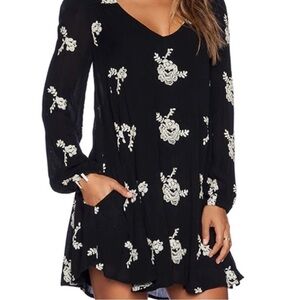 Free People Embroidered Boho Tunic Mini Floral Black Dress