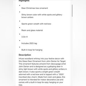 John Derian for Target | Festive Reindeer Ornament with Gold and Green Details
