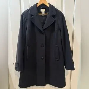 LL Bean x Bellandi 100% Wool Long Coat Size 18 Regular Navy