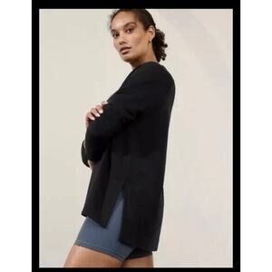 Athleta Coaster Luxe Recover Sweatshirt Black CYA Soft Yoga Top Womens Medium
