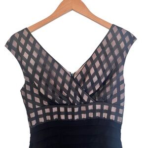 Adrianna Papell Black Mesh Panel Faux Wrap Tiered Cocktail Dress 4