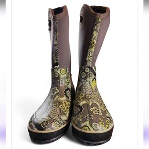 Bogs Classic High Handle Paisley Gray Blue Green Size 12 Womens Waterproof Rain
