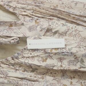 Elegant floral dress with puff sleeves, perfect for any occasion. Features a beautiful cream color with delicate floral patterns.