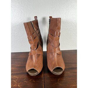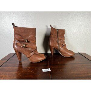 BCBGIRLS CHESTER Womens Boots 6B Brown Straps Factory Distressed Leather Cone Heel