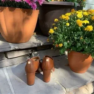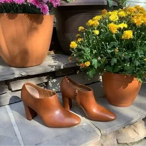 Chic tan leather boots with a sleek design. Perfect for elevating any outfit.