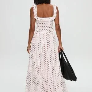 Chic maxi dress with red polka dots. Square neckline. Sleeveless design. Flowy silhouette. Super easy to dress up or down! NWT!!!