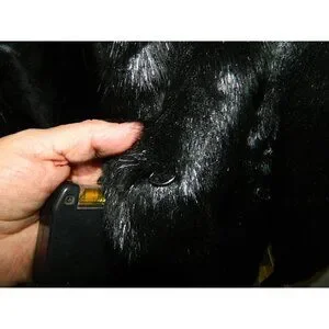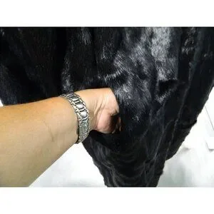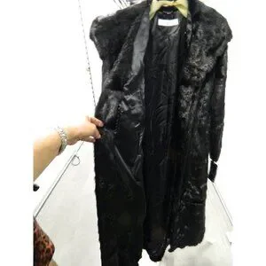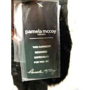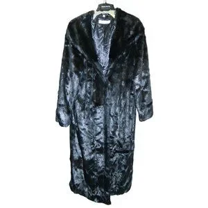 Crafted from luxurious faux fur, this long black coat by Pamela McCoy offers a sophisticated and timeless look for cold-weather wear.