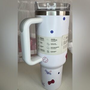 Stylish Stanley tumbler featuring Dodgers graphics. Ideal for keeping drinks hot or cold.Comes with straw. Perfect for Dodgers and Hello Kitty fanatics. Great for travel.