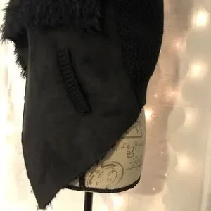 NWOT! V asymmetrical black vest with crochet back and fur along front and top back. Warm and super stylish! Excellent condition never worn.