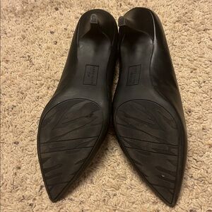 Sleek black heels with a pointed toe. Elegant design for versatile wear.