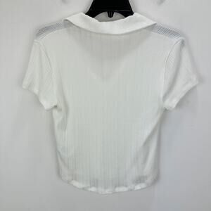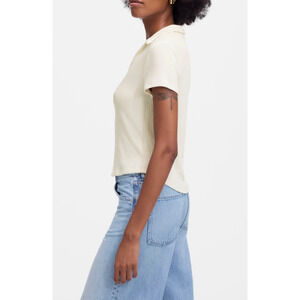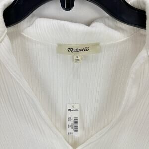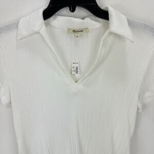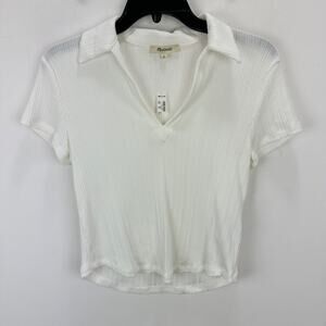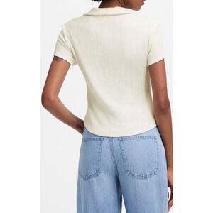 Madewell Ribbed V Neck Polo Tee Top Stretch Lyocell Lighthouse Ivory Slim S NWT.