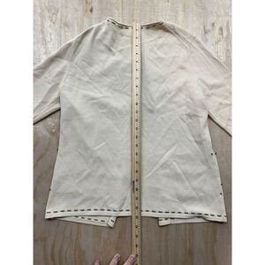DUE PER DUÉ COLLECTION SIZE M Rayon Nylon Beige Cardigan Tassels Beaded Sweater