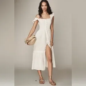 Anthropologie “Peregrine” Square-Neck Midi Dress – White
