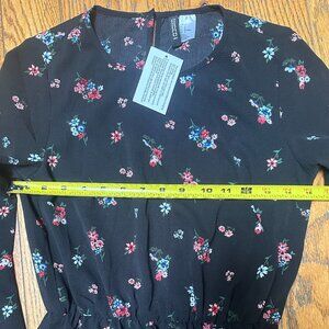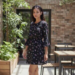 H&M Black Long Bell Sleeve Elastic Waist Floral Flowered Mini Dress