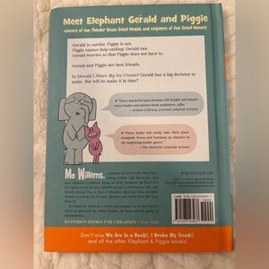 In Mo Willems' book Should I Share My Ice Cream?, Gerald the elephant struggles with the decision to share his ice cream with his best friend Piggie. The story is a humorous and heartwarming lesson about friendship and sharing, as Gerald contemplates the pros and cons of sharing before a surprise ending occurs.