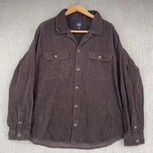 Gap Jacket Mens XXL Brown Shacket Shirt Corduroy Button Down Relaxed Retro