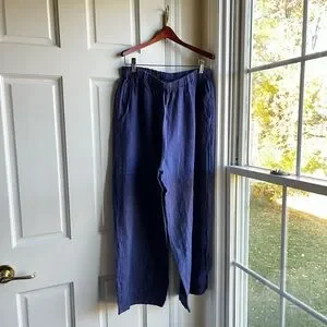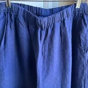 Relaxed fit with elastic waistband. Pure vintage linen with subtle detailing.