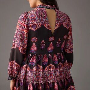 Elegant long sleeve dress with vibrant patterns. Features a flowing design. Ideal for stylish occasions. This dress is absolutely gorgeous, I lost weight and now it’s just too big on me. I worn it only once for a few hours. Got so many compliments! Hope this beauty finds a new home 🥰