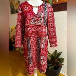 Neiman Marcus multicolor pull on midi dress size 8