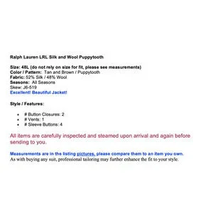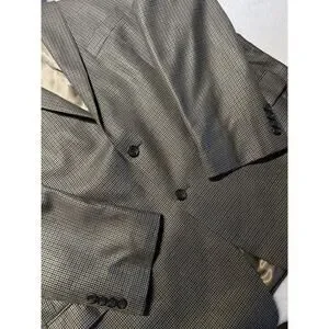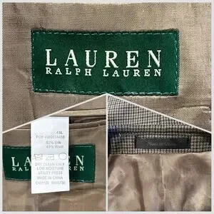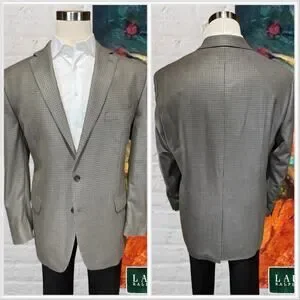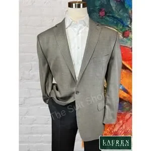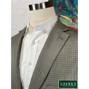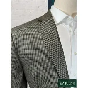 Ralph Lauren LRL Mens 48L Tan Brown Houndstooth Silk Wool Blazer Sport Jacket