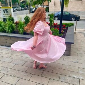 The most gorgeous flattering dress from Selkie! Worn 1 time to dinner! I got so many compliments I’m only selling because I need to repurchase in a different size! In the second picture I’m wearing this dress with a pair of pearl Jimmy Choos which are also for sale! Complete the look with a bundle and I’m happy to throw you a discount! Needs steamed!
