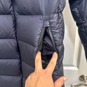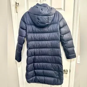 Cozy and sleek puffer coat. Long length. Ideal for cold weather. Features a hood and zip pockets. Worn once, in prestine condition.