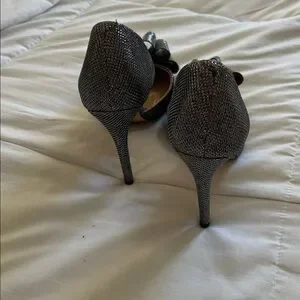 Elegant silver heels with a stylish bow. Perfect for adding glamour to any outfit.