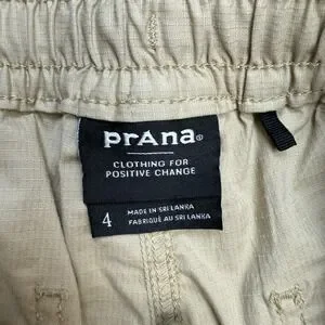 Prana Pants Women 4 Beige Palisades Ripstop Utility Cargo Elastic Waist Hike NEW