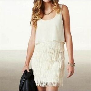 American Eagle Outfitters Ivory Fringe Sleeveless Dress