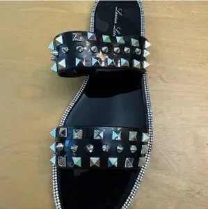 NIB Lauren Lorraine Black Studded Gel Sandals Studley Black Women's Size 9
