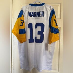 White football jersey featuring yellow sleeves and blue accents. Number 13 displayed prominently.