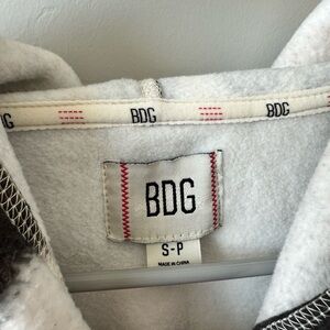 Soft fleece hoodie with stylish design. Includes front pocket and adjustable hood.