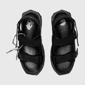 Stylish Off-White sandals. Features black straps. Comfortable design. See pictures for details