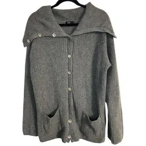 Forte Cashmere 100% Cashmere Gray Wide Lapel Buttoned Cardigan Sweater Large
