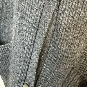 Forte Cashmere 100% Cashmere Gray Wide Lapel Buttoned Cardigan Sweater Lrg Flaw