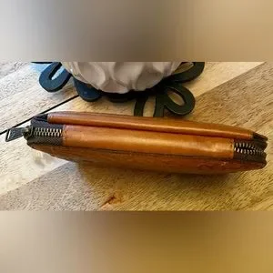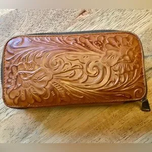 Elegant floral embossing. Warm tan color. Stylish and functional.