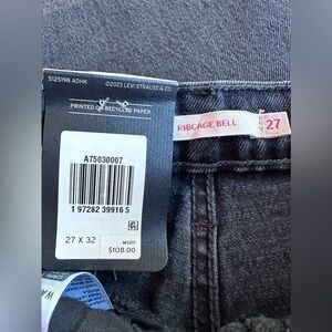 Stylish black flare and wide leg jeans. Classic Levi's design. Perfect for any occasion.