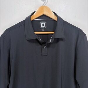 Keywords: FootJoy golf polo shirt, Men's L polo shirt, Black golf shirt, Athletic fit polo, Polyester spandex shirt, Short sleeve golf shirt, Performance polo, Mens activewear, FootJoy apparel, Golf apparel, Outdoor shirt, Casual shirt, Breathable polo