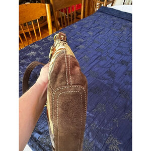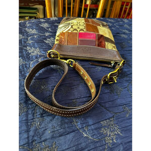 Coach Patchwork Shoulder Bag in Brown & Gold w/ Metal Hangtag