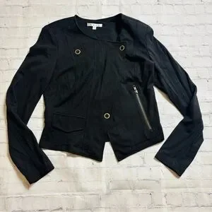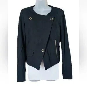 CAbi #615 Moto Blazer Jacket Womens Size S Black Ponte Knit Asymmetrical Zip