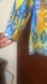 Ruby Rd. Blue and Yellow V neck bead embellished Graphic Blouse 3/4 Sleeve Sz L
