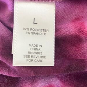 LOGO Lounge by Lori Goldstein, vibrant purple tie-dye pattern, very soft brushed polyester/spandex blend fabric, two front pockets, brand new with original taga