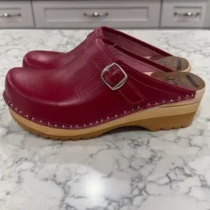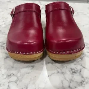 Troentorp “Raspberry” color Leather Clogs with Buckle New Without tags