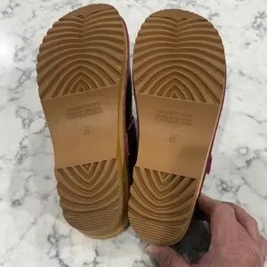 Stylish leather clogs featuring a buckle detail. Perfect for casual wear. Purchased from the European import store in Mount Horeb, Wisconsin. Brand new and never worn. Just didn’t fit me as I need a 42. These are size 41. They were listed as raspberry color. I would say it’s a dark fuchsia, but not hot pink. No condition issues noted, except where they had a price tag on the one heel (pictured.)