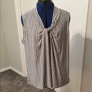 Kasper Black and White Patterned Sleeveless Blouse