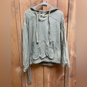 American Eagle Olive Green Hoodie Sweatshirt Women’s Large Button Neck Kangaroo
